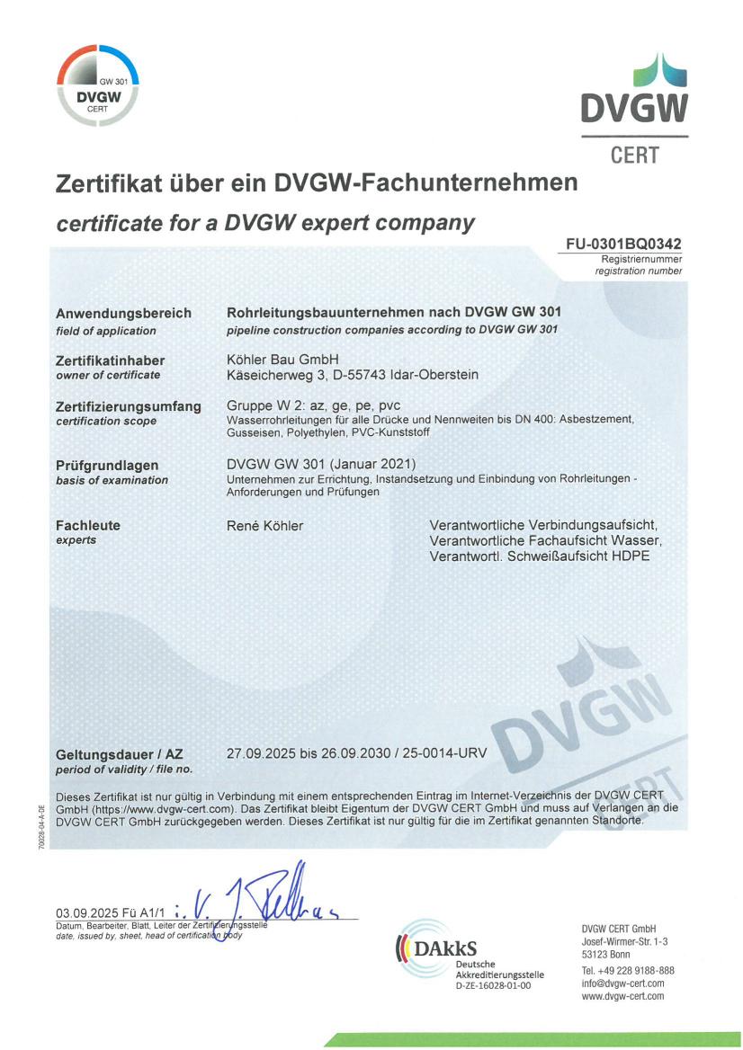 Verlegung von Wasserleitungen aus Guss, PE und PVC